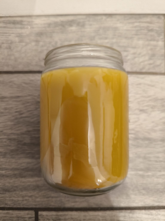 Die Kerze wurde von uns in das Glas gegossen und mit einem ausgewählten Citronella-Duft versetzt.